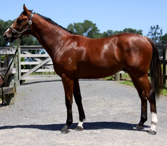 1st dam DIVA DOWN UNDER, by Exceed and Excel. Placed. Half-sister to GOBI RANGER. This is her first foal. 2nd dam BIG STEP, by Honour and Glory. Unraced. Half-sister to ACTRESS, High Heels (dam of DESERT WAR, LASER HAWK). Dam of 6 named foals, all raced, 2 winners, inc:- GOBI RANGER(Tale of the Cat). 3 wins-2 at 2-at 1100m, 1200m, NZ$141,800, S$74,295, ARC Eclipse S., Gr.3, Singapore TC Benchmark 67 H., 2d ARC Great Northern Guineas, Gr.2, Whangarei RC Westbury Stud Challenge S., L, 3d New Zealand Two Thousand Guineas, Gr.1, 4th Waikato RC James & Annie Sarten Memorial S., Gr.3. Pillowin. 2 wins at 1000m, HKJC Hakodate H., Mount Butler H. 3rd dam SILKEN STEP, by Tolomeo. Unraced. Half-sister to BROTO, Pay Back Time, Endless Wonder (dam of WONDERER), Spectacular Play (dam of JANFRANCO). Dam of 12 named foals, 6 to race, 2 winners, inc:- ACTRESS(Snippets). 3 wins-2 at 2-to 1400m, A$115,195, AJC Reginald Allen H., L, Keith Mackay H., L, 4th AJC Flight S., Gr.1. Dam of- Mr Bogart(Northern Meteor). 3 wins at 1000m, 1250m, A$162,450, in 2014-15, ATC Hyland Race Colours H., 2d ATC Skyline S., Gr.2. Above Perfection(Encosta de Lago). Winner at 1400m, A$83,730, AJC Collimore Park H., 2d AJC Adrian Knox S., Gr.3. Producer. High Heels. 2 wins at 1400m, 1550m, AJC Optus World H. Dam of- DESERT WAR(Desert King). 2007 Champion Australian Middle-Distance Horse. 12 wins from 1400m to 2000m, AJC Chipping Norton S., Gr.1, Queen Elizabeth S., Gr.1, VRC LKS Mackinnon S., Gr.1, AJC Epsom H., Gr.1-twice, STC Ranvet S., Gr.1, Hill S., Gr.2-twice. LASER HAWK(Artie Schiller). 5 wins from 1400m to 2000m, A$711,750, to 2014-15, ATC Rosehill Guineas, Gr.1, Newcastle JC Newmarket H., Gr.3, ATC Quakers Inn H., 2d Newcastle JC Newmarket H., Gr.3, 3d Australian Derby, Gr.1, ATC Randwick Guineas, Gr.1, George Main S., Gr.1. Our Desert Warrior(Desert King). 3 wins from 1500m to 1600m, A$106,900, ATC Ibis Styles Draw H., 3d ATC Shannon S., Gr.2. Wookah(Encosta de Lago). 6 wins at 1400m, 1450m, A$306,605, to 2014-15, MRC Redoute's Choice H., 2d VRC Super Impose S., L. Dearness. 3 wins-1 at 2-to 1300m, A$102,630, AJC Kogarah 2YO H. Dam of- ROMANTIC TOUCH(Northern Meteor). 4 wins-3 at 2-from 1400m to 1650m, A$406,110, HK$3,971,950, to 2014-15, BRC JJ Atkins S., Gr.1, ATC Australian Turf Club 2YO H., Tab.com.au 2YO P., 3d HKJC BMW Hong Kong Derby, HK-1, ATC Eskimo Prince S., L. |