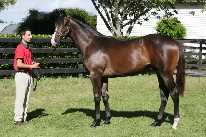 1st dam RUQQAYA, by Van Nistelrooy. 2 wins at 2000m, 2100m, BOP RC Radisson Plaza Resort Air Tahiti Nui H., 2d Wanganui JC TCL Communications H. Half-sister to OCEAN PARK. This is her third foal. Her second foal is a 2YO. Her first foal is an unraced 3YO. 2nd dam SAYYIDA, by Zabeel. 2 wins at 1400m, 1600m, BOP RC Dunstan Stayers Championship Qualifier. Broodmare of the Year in NZ in 2012-13. Half-sister to Brilliant Princess (dam of PRINCE KAAPSTAD). Dam of 4 named foals, 3 to race, all winners, inc:- OCEAN PARK(Thorn Park). Horse of the Year in NZ in 2012-13. Champion Middle Distance Horse in AUS & NZ in 2012-13. 8 wins from 1200m to 2050m, NZ$343,925, A$2,529,000, MVRC WS Cox P., Gr.1, ARC New Zealand S., Gr.1, Hawke's Bay Makfi Challenge S., Gr.1, MRC Underwood S., Gr.1, Caulfield S., Gr.1, Wellington S., Gr.3, ARC Trevor Eagle Memorial 3YO H., 2d ATC Rosehill Guineas, Gr.1, ARC Great Northen Guineas, Gr.2, Waikato Guineas, Gr.3, 3d VRC LKS Mackinnon S., Gr.1, 4th Otaki Maori RC WFA S., Gr.1. Lady Sayyida. 3 wins at 1400m, 2050m, 3d WRC Haight Ashbury H. 3rd dam EASTERN PRINCESS, by Pompeii Court. 6 wins from 1600m to 2200m, A$76,560, MVRC Hoyts Highpoint Quality H., VATC VAFA H. Three-quarter-sister to COURTZA(dam of O'REILLY), OUR POMPEII, HUNZA COURT, TISZAE, Pennies in Heaven (dam of SINGLE CURRENCY), half-sister to CRITIC. Dam of 6 foals, 3 to race, 2 winners, inc:- Amen. 5 wins from 1800m to 2000m, A$174,390, STC Ready Workforce H. Brilliant Princess. Unraced. Dam of- PRINCE KAAPSTAD(Kaapstad). 5 wins-1 at 2-from 1200m to 2100m, NZ$507,990, ARC Easter H., Gr.1, Great Northern Guineas, Gr.2, Carbine Club Trophy, BOP RC First Sovereign Trust 2YO H., 2d New Zealand Derby, Gr.1, Avondale Guineas, Gr.2, 3d Hawke's Bay Mudgway Partsworld S., Gr.1, BOP RC Tauranga S., Gr.3, 4th Hawke's Bay Windsor Park Challenge P., Gr.1, ARC Great Northern Foal S., L. 4th dam BENAZIR, by Vice Regal. 3 wins from 1350m to 1650m, BATC Racecourse H. Half-sister to COURTZA(dam of O'REILLY), OUR POMPEII, FIXED FLUSH, LOST VALLEY, HUNZA COURT, Hunza's Ace, Minidece(dam of TISZAE). Dam of 12 named foals, 11 to race, 7 winners, inc:- CRITIC(Centaine). 9 wins-2 at 2-from 900m to 1600m, NZ$217,375, Otaki Maori RC WFA S., Gr.1, Southland RC New Zealand Bloodstock Air Freight S., L, Otago RC South Island 3YO Championship Final, L. |