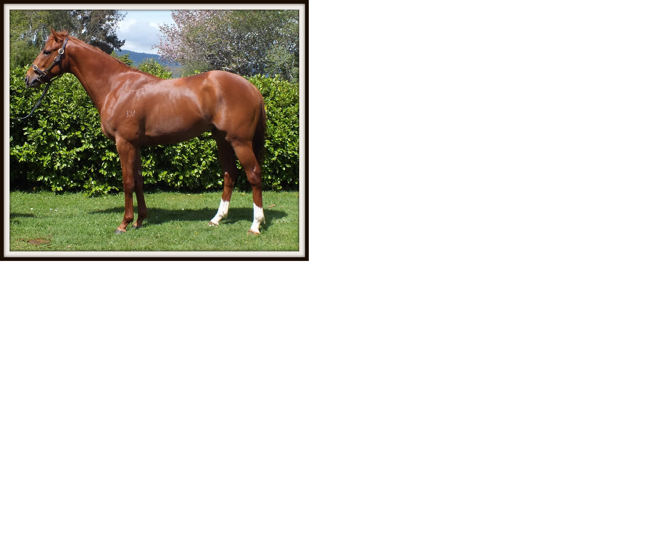 1st dam FOREWARNED, by Volksraad. Placed at 3. Half-sister to Kanga. This is her seventh foal. Her sixth foal is an unraced 3YO. Dam of three foals to race, all winners- Forepins (f. by Pins). 3 wins at 1300m, 1600m. Beach Lady (f. by Scaredee Cat). Winner at 1400m in Aust. Celebrity Psychic (f. by Fast 'n' Famous). Winner at 1400m in 2012-13 in Aust. 2nd dam WARN, by Three Legs. Placed at 3. Sister to DARE(dam of DOUBLE DARE), three-quarter-sister to Enthral, half-sister to Crestkin, Sensation, Empire Trek. Dam of 7 named foals, all raced, 5 winners, inc:- Kanga(Lord Ballina). 6 wins from 1300m to 2100m, NZ$84,125, Manawatu RC TV & Sound H., 3d Manawatu Breeders' S., L, Wanganui Cup, L. Bewarned. 5 wins at 1400m, 1600m, CJC RA Shearing Contractors H. 3rd dam LIEFKIN, by Reindeer. Winner at 1400m. Half-sister to Enthral, King Lilt. Dam of 12 named foals, 8 to race, 4 winners, inc:- DARE(Three Legs). 8 wins from 1200m to 1600m, NZ$86,770, Te Aroha JC New Zealand Thoroughbred Breeders' S., Gr.2, Rotorua RC Battle Eve P., 2d Otaki Maori RC WFA S., L, 3d Waikato RC Noble Heights S., Gr.3, 4th Bay of Plenty International Trophy, Gr.2. Dam of- DOUBLE DARE(O'Reilly). 10 wins to 1500m, A$522,250, STC Maurice McCarten S., L, Michael Hansell Signs H., Plumbers' Supplies Co-Op Welter H., Bacardi Breezer Welter H., 3d QTC Stradbroke H., Gr.1. Dare to Win. 4 wins to 1400m, Manawatu RC Focus Travel H. Dam of- UNDISCLOSED(Pins). 7 wins from 1100m to 1600m, NZ$162,000, to 2012-13, Counties Bowl, L, North Canterbury RC Canterbury S., L, 2d WRC Anniversary H., L, 3d ARC Eagle Technology S., Gr.3. PIN UP BOY(Pins). 6 wins-2 at 2-at 1000m, 1200m, NZ$147,125, A$22,500, Whangarei RC Northland Breeders' S., L, 2d Waikato RC Sprint H., L, 3d ARC Railway H., Gr.1, VRC Carbine Club S., Gr.3. Sensation(Noble Bijou). 2 wins at 1600m, 2000m, AJC Toi Port H., 2d Tasmanian Oaks, Gr.3. Producer. Crestkin(Crested Wave). 2 wins-1 at 2-at 1000m, 1400m, VRC Evening Peal H., VATC Quezette H., 2d VATC Mercedes-Benz H., L, 3d VRC AV Kewney S., Gr.2, VATC Tranquil Star S., Gr.3, 4th AJC Emancipation S., L. Empire Trek(Imperial March). 6 wins-1 at 2-at 1100m, 1600m in U.S.A. and NZ, 3d Assiniboia Downs CTHS Matchmaker S., L. Grandam of- SPECIAL MISSION(Towkay). 7 wins-2 at 2-from 1200m to 1600m, NZ$339,750, Te Aroha JC New Zealand Thoroughbred Breeders' S., Gr.1, Levin RC Ryder S., L, Wanganui JC Carters-Gib S., L, ARC Westbury Classic, 2d Hawke's Bay Highview S., Gr.3. |