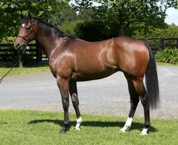 1st dam RIO NUGGET, by Captain Rio. 3 wins at 1200m, 2d Hawke's Bay Elbow Room Sports Bar H., Levin RC 104.2 More FM H. This is her first foal. 2nd dam CYCEE NUGGET, by Volksraad. Unraced. Half-sister to GOLDEN ERA, Golden Sound, Receive (dam of BUFFED - LET GO(Mac.)). Dam of 7 named foals, 6 to race, 4 winners, inc:- Sava Nugget. 2 wins at 1000m, 1100m to 2014-15, 2d SAJC Peter Elberg Funerals H., 3d MRC Master Yearlings H., SAJC Mark's Electrical H. Zero Zero. Winner at 1400m, 3d ARC Stella Artois H. 3rd dam GOLD INGOT, by Bold Venture. Unraced. Sister to Sovereign Command (dam of ENVOY), three-quarter-sister to Foreign Copy (dam of CRONUS, PRAVDA), half-sister to GOLDEN HEIGHTS, ASCENDING(dam of CARIERE), IBIDEM. Dam of 9 foals, 7 to race, 4 winners, inc:- GOLDEN ERA(Stylish Century). 2 wins at 2, Clairwood Debutante H., L. Golden Sound(Kreisler). 4 wins to 1200m, VATC TP Fenner H., MVRC Wedgwood Tableware H., 2d VATC Laurent-Perrier S., L. Grandam of- SOUND JOURNEY(Good Journey). 7 wins from 1200m to 1600m, A$501,650, MVRC Crystal Mile H., Gr.2, Alister Clark S., Gr.2, 2d MRC Lord S., L, 65th Anniversary of the End of WWII S., L, Anniversary Vase, L. Receive. Winner at 1100m in Aust. Dam of- BUFFED - LET GO(Mac.) (Encosta de Lago). 12 wins-1 at 2-to 1500m in Aust. and Macau, Macau Spring Trophy, L, Macau Cup, L. 4th dam GOLD FLEET, by Gold Sovereign. Unraced. Three-quarter-sister to Prince Petary, half-sister to SURGING, Fleet Guy, Lady Messmate. Dam of 15 named foals, 14 to race, 11 winners, inc:- GOLDEN HEIGHTS(Rocky Mountain). 16 wins from 1200m to 1800m, A$135,610, WATC Railway S., Gr.1, Prince of Wales S., Gr.3. ASCENDING(Rocky Mountain). 4 wins-2 at 2, ARC Ladies Mile, L. Dam of- CARIERE(Funny Fellow). 13 wins-2 at 2-from 900m to 2400m, NZ$189,925, Avondale Cup, Gr.1, Manawatu RC Awapuni Gold Cup, Gr.2. Fleet Street. 3 wins-1 at 2-at 6f, 1m, Manawatu RC Massey H. Grandam of- CRONUS(Zabeel). 11 wins from 1600m to 3200m, SAJC Adelaide Cup, Gr.1, Hawke's Bay Cup, Gr.2, Manawatu RC Awapuni Gold Cup, Gr.2. Milliyet. Unraced. Dam of- SAMANTHA MISS(Redoute's Choice). Champion 3YO Filly in Australia in 2009. 7 wins-2 at 2, VRC Oaks, Gr.1, AJC Flight S., Gr.1. Sovereign Command. 2 wins at 1200m, 3d Otago RC Bi Noble H. Dam of- ENVOY(Personal Escort). 9 wins from 1600m to 3200m, NZ$424,770, A$244,800, Wellington Cup, Gr.1, Hawke's Bay Gold Cup, Gr.2. |