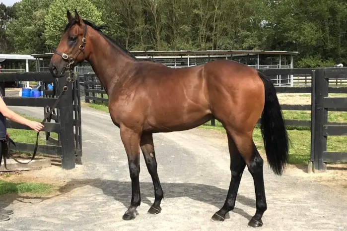 NADEEM (AUS) (Bay 2003-Stud 2007). 2 wins at 2, MRC Blue Diamond S., Gr.1. Sire of 255 rnrs, 166 wnrs, 13 SW, inc. SW Sterling City (Meydan Dubai Golden Shaheen, Gr.1), Happy Galaxy, Mujaarib, Tajmeel, Target in Sight, Savoureux, Sharnee Rose, Triple Asset, Ammirata, Crucial, Spanish Bay, Speedy Leo, Specter, SP Lucky Can Be, Nadeem Lass, Total Attraction, Redeem the Dream, Perfect Harmonee, Kareeming, etc. 1st dam SUNBREASE, by Towkay. Unplaced. Half-sister to IDEA, PERPETUAL CHECK. This is her second live foal. Dam of one foal to race- Muscular Dragon (g. by Iffraaj). Winner at 1400m in 2016, Singapore TC Botanic Gardens S., 2d Singapore TC Super Easy S. 2nd dam REASONABLE, by Sound Reason. Unraced. Half-sister to DOWN THE AISLE, GOLD PULSE. Dam of 12 foals, 10 to race, 9 winners, inc:- IDEA(Grosvenor). 12 wins from 1400m to 3600m, A$347,600, VATC Easter Cup, Gr.3, AJC Mirvac Hotels Showstopper Welter H., MVRC Strathayr H., VATC Wellington Racing Club H., Oakbank RC Yalumba Classic Hurdle, AJC Carioca H., Adam Lindsay Gordon H., 2d VRC Nissan S.H., Gr.1, 3d SAJC Tokyo City Cup, Gr.3, AJC Show County H., L, VATC Eclipse S., L, Werribee Cup, L, 4th SAJC Eagle Blue S., Gr.3. PERPETUAL CHECK(Grosvenor). 5 wins from 1200m to 2400m, A$263,408, AJC Services' Memorial Cup, L, City Tattersall's Club Cup, L, AJC Citius H., STC Banksia H., 2d QTC Brisbane Cup, Gr.1, STC Winter Cup, L, 3d GCTC Prime Minister's Cup, Gr.2. 3rd dam BRIDESMAID, by Agricola. Placed at 3, 2d Manawatu RC December P.H. Sister to GENERAL COMMAND, High Principle, three-quarter-sister to Dicidiana (dam of DAYANA, GRAND CIDIUM), Rustic Ann (dam of TRIUMPHAL QUEEN), half-sister to ILUMQUH, STRAIGHT DRAW, Annie Oakley (dam of CHILTON), Our Love (dam of TERRIFIC). Dam of 9 foals, 7 to race, 5 winners, inc:- DOWN THE AISLE(Imperialist). 5 wins-2 at 2-from 1200m to 2200m, AJC Hall Mark S., L, Henry Kendall H., QTC Mode H., STC Round Table H., Cavalier H., 2d STC Tulloch S., L, 4th STC Canterbury Guineas, Gr.2. Sire. GOLD PULSE(Oncidium). 4 wins at 2000m, 2400m, STC Christmas Cup, L, Castlereagh H., 2d NSW Tatt's RC Chelmsford S., Gr.2, AJC Colin Stephen H., L, 3d AJC Derby, Gr.1, VRC Hotham H., Gr.2. Imperial Bride. Raced twice. Grandam of- Prophet Jewel. 6 wins-1 at 2-to 1300m, A$135,980, QTC Queensland Week H., STC APN Outdoor H., Auburn RSL Club 2YO H. Dam of- DIVINE PROPHET(Choisir). 3 wins-1 at 2-from 1200m to 1600m, A$880,525, to 2016-17, MRC Caulfield Guineas, Gr.1, ATC Up & Coming S., Gr.3, Dapto Leagues Club 2YO H., 2d ATC Stan Fox S., Gr.2, 3d ATC Champagne S., Gr.1, 4th ATC Golden Rose S., Gr.1. PROISIR(Choisir). 3 wins from 1200m to 1600m, A$475,230, Newcastle JC Spring S., Gr.3, ATC Myboycharlie H., 2d ATC Spring Champion S., Gr.1, Randwick Guineas, Gr.1, 3d ATC Hobartville S., Gr.2. |