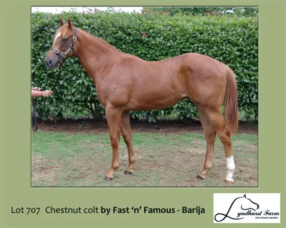 1st dam BARIJA, by Phone Trick. Unraced. Half-sister to VIVA ZAPATA, VALLEYCREEK KID, Johnny Blood. This is her eighth foal. Her seventh foal is an unraced 3YO. Dam of six named foals, four to race, two winners, inc:- Mercedario(g. by Bigstone). 12 wins from 1300m to 2200m, A$261,990, Broome Cup, WATC Shamrock Cup H., Hall of Fame in Adelaide H., Italian Festival Trophy, All Legal H., Moss Kingdom H., Lord Hybrow H., Cottesloe Beach H., Uncle Sam H., 2d WATC Welcome Knight Welter H., Broome Cup, WATC Gypsy Frolic H., Bayswater Community Bank H., Jesmondene H., Budget Driver Protection H., Seppelt Moyston H., 3d WATC Winter Cup, L, Kalgoorlie Cup, L, Kalgoorlie Boulder RC Boulder Cup, L-twice, WATC Cranky Tikit H., Sarina's Son H., Magic Gauntlet H., Seppelt Wines H., 4th WATC Melvista S., L, Tattersall's Cup, L. Let Me Handle It (g. by High Chaparral). 3 wins from 1400m to 1800m to 2010-11, HKJC Panasonic Viera IDTV H., Pyramid Hill H., Lung Shan H. CaliforniaJewel (f. by Bigstone). Unraced. Dam of- Miss Fairweather. Winner at 2000m in 2009-10. 2nd dam VIVA AVIVA, by Secretariat. Winner in U.S.A. Sister to VIVA SEC. Dam of 16 named foals, 11 to race, 8 winners, inc:- VIVA ZAPATA(Affirmed). 2 wins-1 at 2-at 1000m, 1400m, Chantilly Prix du Gros-Chene, Gr.2, 2d Evry Prix Servanne, L, 3d Longchamp Prix de Saint-Georges, Gr.3. Dam of- Viva Nureyev(Nureyev). 2 wins at 1200m, 1600m in France and U.A.E, 2d Deauville Prix Yacowlef, L, 3d Evry Prix Djebel, L. Doohulla(Stravinsky). 2 wins-1 at 2-at 6f, 3d Newmarket Bosra Sham S., L, Goodwood CSMA and Frizzell 80th Anniversary 2YO S. Producer. Zapata Beauty(Manila). Winner at 1200m, 3d Maisons-Laffitte Prix Imprudence, L, 4th Longchamp Prix des Reservoirs, Gr.3. Producer. VALLEYCREEK KID(Septieme Ciel). 2 wins, Arapahoe Gold Rush Futurity, L. Johnny Blood(Blushing John). 2 wins, 2d Arlington Isaac Murphy H., L. Sire. Star Sixty Seven. Unraced. Grandam of- Nicastro(Testa Rossa). 4 wins-3 at 2-to 1450m, A$186,528, to 2009-10, MRC Lord Dudley H., 3d MRC 65th Anniversary of the End of WWII S., L. 3rd dam VIVA LA VIVI, by Royal Note. 15 wins, US$233,320, Aqueduct Correction H., Gr.3, Santa Anita Monrovia H., Gr.3, Santa Paula H., Gr.3, Hollywood Sequoia H., L, 2d Aqueduct Vagrancy H., Gr.3, Hollywood Sequoia H., Gr.3, Bay Meadows Redwood City H., L. Half-sister to Mini Quinn (dam of WITCH OF SALEM). Dam of 7 named foals, 3 to race, all winners, inc:- VIVA SEC(Secretariat). 10 wins from 6f to 1m, US$307,022, Aqueduct Grey Flight H., L, Dark Mirage S., L, 2d Aqueduct Correction H., Gr.3. Producer. |