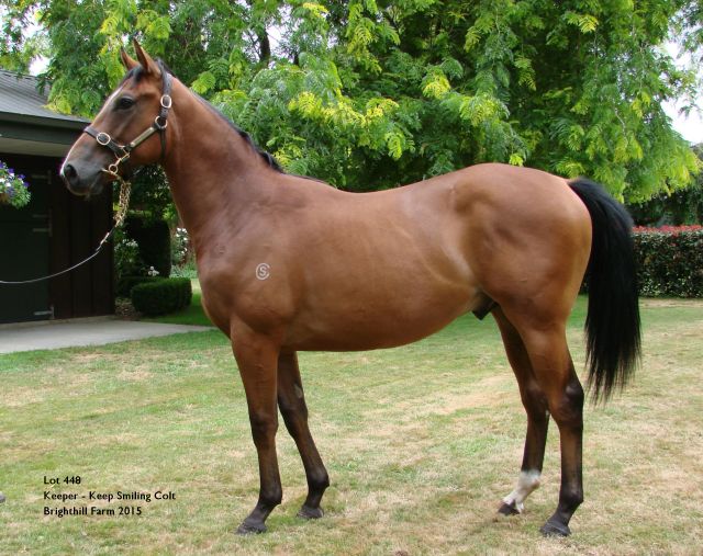 1st dam KEEP SMILING, by Stravinsky. Winner at 2000m. Half-sister to Cheshire. This is her first foal. 2nd dam SMILING LIKE, by Star Way. Champion Stayer in NZ in 2000-01. 7 wins from 2000m to 3200m, NZ$342,675, Wellington Cup, Gr.1, New Zealand Cup, Gr.2, WRC Trentham S., Gr.3, CJC Hutt Valley Cartage & Customs H., WRC Hardy Trade H., 2d CJC Gold Cup, Gr.3, 4th Waikato RC Instrument Supplies S., Gr.3. Sister to NIMUE, (MR) EUROSTAR, Usha, three-quarter-sister to GREENMAILER, Lady Genesis (dam of KAPITAIN KASH, DANTE'S PARADISO), half-sister to SIRSTACI, Equuleus, Her Royal Highness. Dam of 6 foals, all raced, 3 winners, inc:- Cheshire(Cape Cross). 2 wins at 2000m, 2100m, 3d ARC New Zealand Derby Trial S., L. 3rd dam EUSTACI, by Sir Tristram. Winner at 1600m, 2d Waikato RC Te Pahu H. Half-sister to Lady Genesis (dam of KAPITAIN KASH, DANTE'S PARADISO). Dam of 14 foals, 13 to race, 11 winners, inc:- SIRSTACI(Silver Dream). 9 wins from 1200m to 1600m, NZ$340,792, ARC Easter H., Gr.1, CJC Stewards' S.H., Gr.3, 2d ARC New Zealand S., Gr.1, WRC Jarden Mile, Gr.1, Telegraph H., Gr.1, 3d WRC Telegraph H., Gr.1. NIMUE(Star Way). Top filly on The 1992-93 NZ 3YO Free H. 1993 Joint Wrightson Filly of the Year. 8 wins-2 at 2-from 1200m to 1600m, New Zealand One Thousand Guineas, Gr.1, Levin RC Bayer Classic, Gr.1, ARC Ladies Mile, Gr.3, Masterton RC Lowland S., Gr.3. Dam of- Niniane(Casual Lies). Winner at 2, Otago RC Dunedin City Ford Juvenile S., 2d CJC South Island 2YO S., L. Producer. Ela Nimue. 2 wins at 1600m, 2000m. Dam of- DEANE MARTIN(Keeper). 6 wins from 1600m to 2400m, NZ$133,150, A$89,300, to 2014-15, ATC Colin Stephen H., Gr.3, ARC Champion Stakes Prelude, L, 3d ATC Kingston Town S., Gr.3. SMILING LIKE(Star Way). 7 wins. See above. (MR) EUROSTAR(Star Way). 11 wins-2 at 2-from 1200m to 2400m, NZ$124,115, A$406,758, AJC Summer Cup, Gr.3, Cambridge Breeders' S., Gr.3, STC Parramatta Cup, L, 2d QTC Brisbane Cup, Gr.1. Her Royal Highness(Imposing). 7 wins to 1300m, ARC Superliquorman H., 2d BOP RC Personalities' S., L, 3d ARC Railway H., Gr.1, Newmarket H., L. Equuleus(Volksraad). 2 wins at 1200m, ARC Novotel Ellerslie H., 2d WRC Lindauer H., 3d Matamata Breeders' S., Gr.2. Producer. Usha(Star Way). 2 wins at 1200m, 1600m, Manawatu RC Schweppes H., 2d AJC Adrian Knox S., Gr.3, 4th Masterton RC Lowland S., Gr.3. Ladystaci. Winner at 2100m. Dam of- GREENMAILER(Star Way). Winner at 2000m, STC Kingston Town S., Gr.3. |