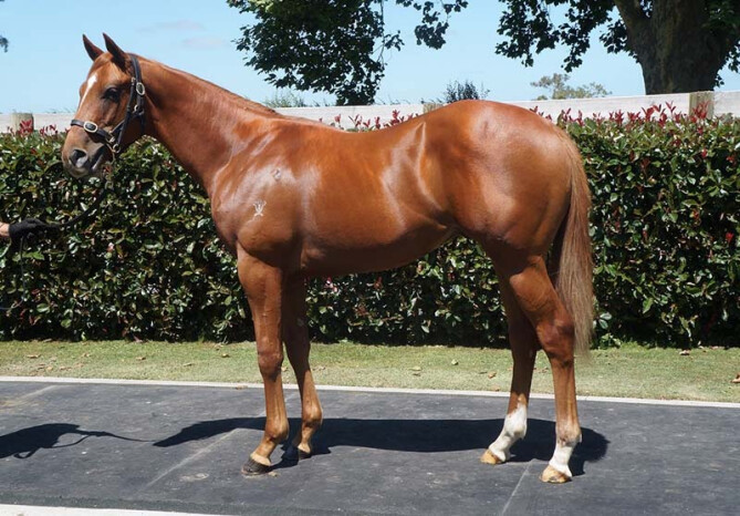 1st dam THE DAZZLER, by Centaine. Placed at 3. Half-sister to THE JEWEL(dam of THE DIAMOND ONE), STAR AFFAIR(dam of SOLID BILLING, THY), THE ONE - NEVER LOOK BACK(H.K.). This is her seventh foal. Her sixth foal is a 2YO. Her fifth foal is an unraced 3YO. Dam of four foals to race, two winners, inc:- THE SOLITAIRE(f. by O'Reilly). 10 wins from 1200m to 2400m, NZ$295,051, to 2013-14, Otago RC Dunedin Cup, L, Riverton Cup, L, Hororata RC South Island Thoroughbred Breeders S., L, Otago RC Berkley Stud H., Counties RC NRM H., North Canterbury RC Coupland's Bakeries Mile Trial, 2d CJC Coupland's Bakeries Mile, Gr.2, Easter Cup, L, Timaru Cup, L, Otago RC Redpaths H., 3d Waikato RC Herbie Dyke S., Gr.1, 4th CJC Coupland's Bakeries Mile, Gr.2, WRC Trentham S., Gr.3. The Beaut (g. by O'Reilly). Winner at 1600m, 2d Manawatu RC Richard Algar Ltd H., WRC Martin Bosley at Trentham Raceday H., Silent Achiever Cup, Welcome Brisbane Lions H., 3d Manawatu RC Speights Ale House H. Charter Victoria (g. by O'Reilly). Placed in 2014-15, 3d HKJC Suisse Programme H. 2nd dam THE GRIN, by Grosvenor. 4 wins at 1600m, 2000m, Otago Breeders' S., L, Southland Guineas, L, 2d CJC Warstep S., L, 3d Otago RC South Island 3YO Championship Final, L. 2003 NZ Broodmare of the Year. Three-quarter-sister to IRISH CHANCE, half-sister to THE CHEEK, The Poseur, Gallant Son. Dam of 11 named foals, all raced, 8 winners, inc:- THE JEWEL(O'Reilly). Champion 3YO in NZ in 2002-03. 11 wins-1 at 2-from 1200m to 2000m, NZ$458,989, A$149,100, Waikato RC International S., Gr.1, New Zealand One Thousand Guineas, Gr.1, BTC Doomben Roses S., Gr.3, Otago RC Dunedin Guineas, L, Southland Guineas, L. Dam of- THE DIAMOND ONE(Tale of the Cat). 5 wins at 1200m, 1600m, NZ$124,925, to 2013-14, Otago RC White Robe Lodge H., Gr.3, Eclipse S., L, 2d CJC Canterbury Breeders S., L. The Glitzy One(Flying Spur). 8 wins from 1400m to 2500m, to 2013-14, CJC NZI Great Autumn H.-twice, 2d Canterbury Gold Cup, Gr.3. The Bold One. 2 wins to 1200m to 2014-15, 4th Cambridge Breedersâ S., Gr.3. STAR AFFAIR(Star Way). 4 wins at 1600m, NZ$82,275, A$13,500, Cambridge JC Travis S., Gr.2, 3d Gosford Gold Cup, Gr.3. Dam of- SOLID BILLING(Rock of Gibraltar). 7 wins from 1600m to 3200m, AJC Summer Cup, Gr.3, BRC Queensland Cup, L. THY(O'Reilly). 4 wins from 1200m to 1600m, NZ$700, A$294,100, to 2013-14, ATC Aspiration H., L, MRC Regal Roller S., L. THE ONE - NEVER LOOK BACK(H.K.) (O'Reilly). 3 wins-1 at 2-at 1200m, 1600m, VRC Danehill S., Gr.3, 2d Manawatu Sires' Produce S., Gr.1. |
