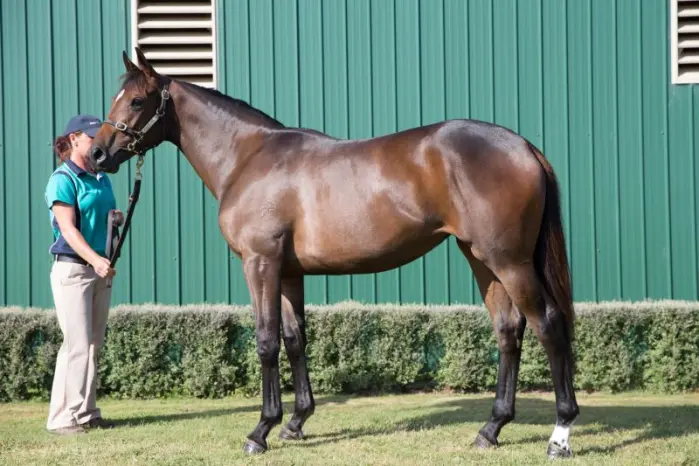 1st dam ALLEGORY, by Woodman. Placed in NZ and Aust. Half-sister to Fantastic Owners. This is her fifth foal. Her fourth foal is a 2YO. Dam of two foals to race, both winners- Hidden Message (f. by Pentire). 5 wins from 1400m to 2200m, A$149,465, MVRC Late Starter Membership H., Aquanas Foods Premium H., 2d MRC Ascend Sales & Sponsorship H. Pentometer (g. by Pentire). 4 wins from 1600m to 2400m, A$198,535, to 2013-14, ATC Australian Turf Club H., Liberty International Underwriters H., Hyland Race Colours H., 2d ATC Mossman at Vinery P. 2nd dam QUEEN OF STATE, by Volksraad. 5 wins to 1300m, R305,460, Newmarket TC Gardenia H., L, 3d Newmarket TC John Breval Memorial H., L, Turffontein Fillies & Mares Sprint H., L, 4th Newmarket TC Camellia H., L. Half-sister to SPRINT BY. Dam of 5 named foals, all raced, 3 winners, inc:- Fantastic Owners(Fantastic Light). 8 wins from 1200m to 1600m, A$11,350, 87,862Rgt., S$832,110 in Aust. and Singapore, Singapore TC Canada Cup, Open H.-3 times, 2d Singapore TC EW Barker Trophy, Sgp-2, Jumbo Jet Trophy, Sgp-3, Garden City Trophy, Sgp-3, 3d Singapore TC Patrons' Bowl, Sgp-1, Singapore Derby Trial, Sgp-2, Three Rings Trophy, Sgp-3, Selangor TC Sports Toto Supreme Challenge Trophy, L, 4th Singapore 4YO Mile, Sgp-3, Singapore TC Kranji Sprint, Sgp-3, Paititi Gold Trophy, Sgp-3. 3rd dam BROOKES CROSS, by Effervescing. Raced twice. Half-sister to FLYING PASTER, ARGOLID. Dam of 9 named foals, all raced, 8 winners, inc:- SPRINT BY(Kaapstad). 10 wins from 1200m to 2100m, A$1,093,280, AJC Doncaster H., Gr.1, STC Canterbury S., Gr.2, Shannon H., Gr.3, Gosford Gold Cup, Gr.3, 2d AJC All-Aged S., Gr.1, STC Frederick Clissold H., Gr.3, Christmas S., L, Royal Parma S., L, 3d NSW Tatt's RCTramway H., Gr.3, STC Ajax S., Gr.3, 4th Newcastle JC Newmarket H., Gr.3. QUEEN OF STATE(Volksraad). 5 wins. See above. Elleandee. Winner at 900m in Aust. Dam of- Ridethebreeze(Anabaa). 2 wins-1 at 2-at 1200m, 1300m, R197,750, 2d Scottsville Byerley Turk P., Gr.3. 4th dam PROCNE, by Acroterion. 6 wins, Bay Meadows My Fair Lady S., L. Sister to High Renaissance (dam of GO JAY), half-sister to MESSENGER OF SONG. Dam of 9 named foals, 7 to race, 6 winners, inc:- FLYING PASTER(Gummo). 13 wins-7 at 2, US$1,127,460, Hollywood Derby, Gr.1, Santa Anita Derby, Gr.1, Santa Anita San Antonio S., Gr.1. Sire. |
