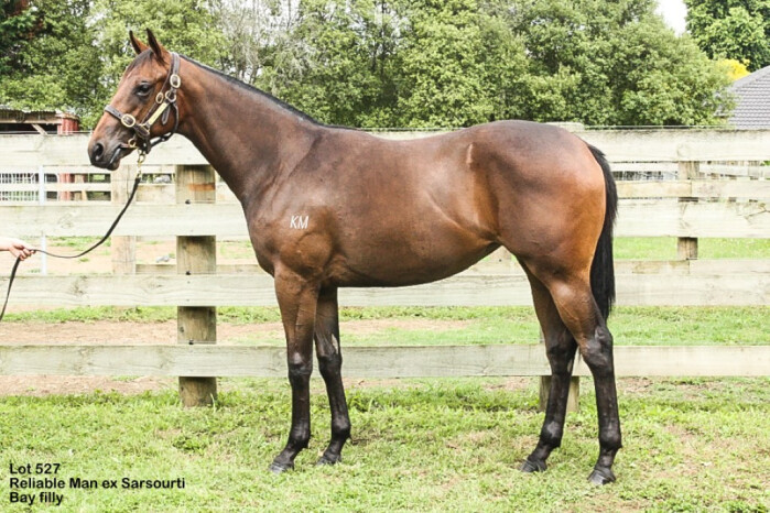 RELIABLE MAN (GB) (Grey 2008-Stud 2013). 5 wins from 2000m to 2400m, ý80,400, ý1,079,070, US$15,311, A$309,000, Chantilly Prix du Jockey Club, Gr.1, ATC Queen Elizabeth S., Gr.1, Longchamp Prix Niel, Gr.2, 2d La Coupe de Maisons-Laffitte, Gr.3, 3d Longchamp Prix Ganay, Gr.1, Grand Prix de Paris, Gr.1. Half-brother to SW I'm Imposing (ATC Summer Cup, Gr.3) and SW Gale Force. His oldest progeny are yearlings. 1st dam SARSOURTI, by Ustinov. Winner at 1400m. Half-sister to CLASSIC CLARE. This is her second living foal. Dam of one foal to race. 2nd dam FUNNY FEATURES, by Archway. Unraced. Dam of 9 named foals, all raced, 7 winners, inc:- CLASSIC CLARE(Gold Brose). 7 wins-1 at 2-to 1400m, NZ$111,175, A$4,500, Otago RC New Zealand Bloodstock Insurance S., L, CJC Canterbury Belle S., L, Holy Grail H., Tuscany Flyer at Prebbleton Farm3YO H., 2d Manawatu RC Eulogy S., Gr.3, Otago RC Dunedin Guineas, L. Shabu Shabu. 7 wins-2 at 2-from 1400m to 1800m, HK$4,955,450, Hong Kong Football Club Centenary Challenge Cup, HKJC Fenwick H. Magic Epic. 6 wins to 1400m, NZ$82,150, to 2014-15, Wyndham RC Fireside Cup. Art Features - Dragon Inn (H.K.). 5 wins at 1200m, 1400m, CJC Press Salver H., HKJC Tiu Keng Leng H., Nanjing H., Nam Cheong H. Pintaka. 2 wins-1 at 2-at 1200m, 1400m, A$91,250, MRC Shankhill Lass H., 2d VRC Eugene Gorman H., 4th SAJC Morphettville Guineas, L. 3rd dam HAPPY FEATURES, by Famous Star. Winner at 2, MVRC Silver Jubilee S., L, 3d MVRC Happy Valley H. Half-sister to WAIKIKI, Morlin Maid (dam of LOVE OF MARY). Dam of 11 named foals, 8 to race, 5 winners, inc:- Jimson the Best. 4 wins at 1600m, 1650m, HK$4,985,525, HKJC Macau-Taipa Bridge H., Ta Kung Pao 110th Anniversary Cup, Ascot H., Lily H. 4th dam DANCING MAID, by Sovereign Edition. Winner at 1600m. Half-sister to Tambarria(dam of SURE WIN KING). Dam of 11 named foals, 10 to race, 7 winners, inc:- WAIKIKI(Crested Wave). 9 wins at 1600m, 2000m, Te Aroha JC New ZealandThoroughbred Breeders' S., Gr.2-twice, ARC Clifford P., Gr.3. Grandam of- PUTTANESCA(Bertolini). 2 wins at 1200m, 2000m, US$6,960, NZ$128,512, ARC Royal S., Gr.2, 2d WRC Desert Gold S., Gr.3. HAPPY FEATURES(Famous Star). Winner. See above. Morlin Maid. 4 wins-2 at 2-at 1200m, BATC Reckless 2YO H. Dam of- LOVE OF MARY(Zeditave). 4 wins-1 at 2-from 1200m to 1600m, VRC Edward Manifold S., Gr.2, MVRC Champagne S., Gr.2. Grandam of- JABALI(Exceed and Excel). Winner at 1600m, A$513,600, in 2014-15, BRC Queensland Guineas, Gr.2, 2d MRC Blue Diamond S., Gr.1. Courtroom Sweetie. 3 wins at 1100m, 1250m, STC Leichhardt H. Dam of- SACRED KINGDOM(Encosta de Lago). Horse of the Year in Hong Kong in 2010. 17 wins at 1000m, 1200m, Cathay Pacific Hong Kong Sprint, Gr.1-twice, HKJC Chairman's Sprint Prize, HK-1-twice, Kent & Curwen Centenary Sprint Cup, HK-1-twice, Singapore TC Krisflyer International Sprint, Sgp-1, HKJC GOME Sprint, HK-2-twice. |