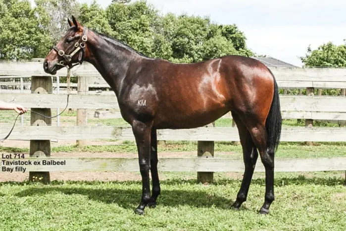 TAVISTOCK (NZ) (Bay 2005-Stud 2010). 6 wins-1 at 2, Waikato Draught Sprint, Gr.1. Sire of 81 rnrs, 41 wnrs, inc. SW Tarzino (Victoria Derby, Gr.1), Volkstok'n'barrell, Werther, Avisto, Tavy, SP Diamond Valores, Imperial Lass, Longchamp, Midnitemagicman - Little Island (H.K.), Titanium and of Airlie House, Arpeggio, Francis Drake, Tatters, Amber Rayne, Margin Trader, Nymph Monte, Tavis Star, Ana, etc. 1st dam BALBEEL, by Zabeel. Unplaced. Blood-sister to Ela Nimue (dam of DEANEMARTIN), half-sister to Cheshire. This is her fifth living foal. Her fourth foal is a 2YO. Her third foal is an unraced 3YO. Dam of two foals to race, inc:- Bel Sorriso (f. by Keeper). 5 wins-2 at 2-from 1200m to 2200m to 2014-15, WRC Dixon, Dunlop Parliamentary H., 2d Manawatu RC Hylands Sportswear H. 2nd dam SMILING LIKE, by Star Way. Champion Stayer in NZ in 2000-01. 7 wins from 2000m to 3200m, NZ$342,675, Wellington Cup, Gr.1, New Zealand Cup, Gr.2, WRC Trentham S., Gr.3, CJC Hutt Valley Cartage & Customs H., WRC Hardy Trade H., 2d CJC Gold Cup, Gr.3, Avondale JC Portage Peninsula Hotel H., CJC Fitzgerald Arms Tavern H., 4th Waikato RC Instrument Supplies S., Gr.3. Sister to NIMUE, (MR) EUROSTAR, Usha, three-quarter-sister to GREENMAILER, Lady Genesis (dam of KAPITAIN KASH, DANTE'S PARADISO), half-sister to SIRSTACI, Equuleus, Her Royal Highness. Dam of 6 foals, all raced, 3 winners, inc:- Cheshire(Cape Cross). 2 wins at 2000m, 2100m, 3d ARC New Zealand Derby Trial S., L. 3rd dam EUSTACI, by Sir Tristram. Winner at 1600m, 2d Waikato RC Te Pahu H. Half-sister to Lady Genesis (dam of KAPITAIN KASH, DANTE'S PARADISO). Dam of 14 foals, 13 to race, 11 winners, inc:- SIRSTACI(Silver Dream). 9 wins from 1200m to 1600m, NZ$340,792, ARC Easter H., Gr.1, CJC Stewards' S.H., Gr.3, 2d ARC New Zealand S., Gr.1, WRC Jarden Mile, Gr.1, Telegraph H., Gr.1, ARC Rolls-Royce S., L. NIMUE(Star Way). Top filly on The 1992-93 NZ 3YO Free H. 1993 Joint 8 wins-2 at 2-from 1200m to 1600m, New Zealand One Thousand Guineas, Gr.1, Levin RC Bayer Classic, Gr.1, ARC Ladies Mile, Gr.3. Dam of- Niniane(Casual Lies). Winner at 2, 2d CJC South Island 2YO S., L. Ela Nimue. 2 wins at 1600m, 2000m. Dam of- DEANE MARTIN(Keeper). 6 wins from 1600m to 2400m, NZ$135,050, A$89,300, to 2014-15, ATC Colin Stephen H., Gr.3, ARC Champion Stakes Prelude, L, 3d ATC Kingston Town S., Gr.3. SMILING LIKE(Star Way). 7 wins. See above. (MR) EUROSTAR(Star Way). 11 wins-2 at 2-from 1200m to 2400m, AJCSummer Cup, Gr.3, Cambridge Breeders' S., Gr.3, STC Parramatta Cup, L. Her Royal Highness(Imposing). 7 wins to 1300m, ARC Superliquorman H., 2d BOP RC Personalities' S., L, 3d ARC Railway H., Gr.1, Newmarket H., L. Equuleus(Volksraad). 2 wins at 1200m, 3d Matamata Breeders' S., Gr.2. Usha(Star Way). 2 wins at 1200m, 1600m, 2d AJC Adrian Knox S., Gr.3. Ladystaci. Winner at 2100m. Dam of- GREENMAILER(Star Way). Winner at 2000m, STC Kingston Town S., Gr.3. |