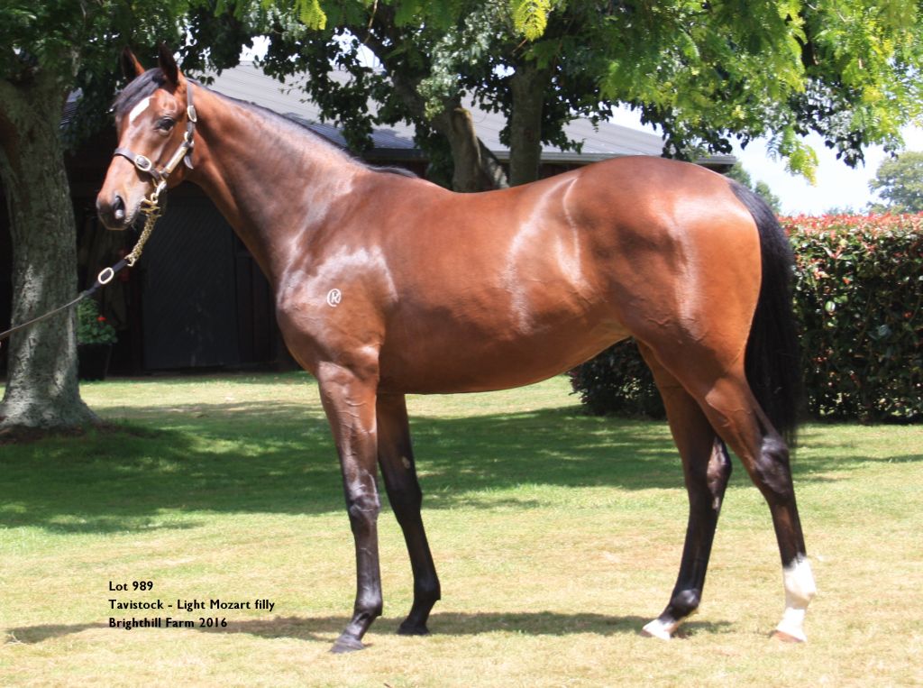 TAVISTOCK (NZ) (Bay 2005-Stud 2010). 6 wins-1 at 2, Waikato Draught Sprint, Gr.1. Sire of 81 rnrs, 41 wnrs, inc. SW Tarzino (Victoria Derby, Gr.1), Volkstok'n'barrell, Werther, Avisto, Tavy, SP Diamond Valores, Imperial Lass, Longchamp, Midnitemagicman - Little Island (H.K.), Titanium and of Airlie House, Arpeggio, Francis Drake, Tatters, Amber Rayne, Margin Trader, Nymph Monte, Tavis Star, Ana, etc. 1st dam LIGHT MOZART, by Mozart. Placed at 3 in GB. This is her fifth foal. Her fourth foal is a 2YO. Dam of three foals to race, two winners- Amber Rayne (f. by Tavistock). Winner at 2, 2d Rotorua RC New Zealand Bloodstock Insurance Pearl Series H., 3d ARC Bestaff S. Surfin' Safari (c. by Footstepsinthesand). Winner at 2, 2d Rome Premio Philyra. Show Myla (f. by Show a Heart). Placed in 2014-15 in Aust. 2nd dam FOOTLIGHT FANTASY, by Nureyev. Winner at 7f, Epsom Sherwood S. Half-sister to Millennium Dash (dam of DASH TO THE FRONT, DASH TO THE TOP), Alligram (dam of KISSOGRAM). Dam of 11 named foals, all raced, 8 winners, inc:- Unscrupulous. 3 wins at 7f, 1m, Newmarket Ryan Bloor H., Royal Ascot Buckingham Palace H., 2d Goodwood Sun-X UK Leaderboard Sports S. Lindop. 2 wins at 1m, 16½f, Newbury Kiwi Mike Stag Do S. French Fantasy. 3 wins at 900m, 1350m to 2015 in Norway. Fantasy Ridge. Winner at 2 in GB. Dam of- Fantasy King. 5 wins from 1¾m to 17½f to 2015, Leopardstown SandyfordS. Dominant Dancer. Winner at 2, 3d Newmarket Racing Post Fillies' Rated S. Dam of- Dominant Fellow(Dehere). 4 wins-3 at 2-at 1000m, 1200m in Sweden, Taby Svealandlöpning, 3d Jagersro Sprint S., L, Norsk 2000 Guineas, Ovrevoll Tattersalls Norsk Kriterium, Jagersro Malmö Stads Pris. Chantaco. 7 wins-1 at 2-from 7f to 17f, Doncaster Audi Wheatley Hall Road H., Redcar Zetland Gold Cup, 2d Newmarket Stanjamesuk.com H. 3rd dam MILLIGRAM, by Mill Reef. Third top filly on The 1986 2YO & 1987 3YO European Classifications. 4 wins-1 at 2-from 7f to 1m, £306,890, Ascot Queen Elizabeth II S., Gr.1, Goodwood Waterford Crystal Mile, Gr.2, Royal Ascot Coronation S., Gr.2, 2d Irish One Thousand Guineas, Gr.1, The One Thousand Guineas, Gr.1, Longchamp Prix Marcel Boussac, Gr.1. Half-sister to Someone Special(dam of ONE SO WONDERFUL, ALNASR ALWASHEEK, RELATIVELY SPECIAL, RAUCOUS LAD). Dam of 10 foals, 8 to race, 5 winners, inc:- Millennium Dash. Winner at 10¼f in GB. Dam of- DASH TO THE FRONT(Diktat). 2 wins at 8¾f, 11f, Warwick Warwickshire Oaks, L, 2d Newmarket Fillies' H. Dam of- SPEEDY BOARDING(Shamardal). 2 wins at 1¼m in 2015, Newbury Lord Weinstock Memorial S., L, 2d Yarmouth John Musker S., L. DASH TO THE TOP(Montjeu). 2 wins-1 at 2-at 1m, 10¼f, Newcastle Hoppings S., L, 2d Yorkshire Oaks, Gr.1, 3d Ascot Fillies Mile, Gr.1. Alligram. Unplaced. Dam of- KISSOGRAM(Caerleon). 3 wins at 1m, 1¼m, Newmarket Sun Chariot S., Gr.2, Sandown Atalanta S., L, 4th Goodwood Nassau S., Gr.1. |