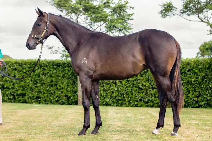 JIMMY CHOUX (NZ) (Bay 2007-Stud 2012). 12 wins-3 at 2, New Zealand Derby, Gr.1. Leading NZ First Season Sire 2015-16. Sire of SW Manolo Blahniq (ARC Eclipse S., Gr.3), SP What Choux Want, Cobblertothestars and of Echappe, Chambon, Chaussure, Heptagon, Parlay Vous and of the placegetters Funny Face, Inanna, Jackson Road, Jimmy Vital, Onstage, Poker Face, Sweet Varden, etc. His oldest progeny are 3YOs. 1st dam ALLEGORY, by Woodman. Placed in NZ and Aust. Half-sister to Fantastic Owners. This is her seventh foal. Her sixth foal is a 2YO. Her fifth foal is an unraced 3YO. Dam of three foals to race, two winners, inc:- Hidden Message (f. by Pentire). 5 wins from 1400m to 2200m, A$149,465, MVRC Late Starter Membership H., Aquanas Foods Premium H., 2d MRC Ascend Sales & Sponsorship H. Pentometer (g. by Pentire). 4 wins from 1600m to 2400m, A$198,535, ATC Australian Turf Club H., Liberty International Underwriters H., Hyland Race Colours H., 2d ATC Mossman at Vinery P., Tab.com.au H., 3d ATC Hyland Race Colours P., Membership on Sale H., Hyland Race Colours H. 2nd dam QUEEN OF STATE, by Volksraad. 5 wins to 1300m, Newmarket Gardenia H., L,3d Newmarket John Breval Memorial H., L, Turffontein Fillies & Mares SprintH., L. Half-sister to SPRINT BY. Dam of 6 foals, all raced, 4 winners, inc:- Fantastic Owners(Fantastic Light). 8 wins from 1200m to 1600m, A$11,350, 87,862Rgt., S$832,110 in Aust. and Singapore, Singapore TC Canada Cup, Open H.-3 times, 2d Singapore TC EW Barker Trophy, Sgp-2, 3d Singapore TC Patrons' Bowl, Sgp-1, Singapore Derby Trial, Sgp-2. Espresso Cavallo. Winner at 1600m in Aust. Dam of- Serve and Volley. 2 wins at 1200m, 1250m to 2016-17, ATC TAB Rewards H. 3rd dam BROOKES CROSS, by Effervescing. Raced twice. Half-sister to FLYING PASTER, ARGOLID. Dam of 9 named foals, all raced, 8 winners, inc:- SPRINT BY(Kaapstad). 10 wins from 1200m to 2100m, AJC Doncaster H., Gr.1, STC Canterbury S., Gr.2, Shannon H., Gr.3, Gosford Gold Cup, Gr.3, 2d AJC All-Aged S., Gr.1, STC Frederick Clissold H., Gr.3. QUEEN OF STATE(Volksraad). 5 wins. See above. Elleandee. Winner at 900m in Aust. Dam of- Ridethebreeze(Anabaa). 2 wins-1 at 2-at 1200m, 1300m, 2d Scottsville Byerley Turk P., Gr.3, Clairwood Nikkeibolt & Engineering Supplies H. 4th dam PROCNE, by Acroterion. 6 wins, Bay Meadows My Fair Lady S., L. Sister to High Renaissance (dam of GO JAY), half-sister to MESSENGER OF SONG, Magic Casements (dam of MYKAWA). Dam of 9 named foals, 7 to race, 6 winners, inc:- FLYING PASTER(Gummo). Second on The 1978 USA 2YO Free H. 13 wins-7 at 2, US$1,127,460, Santa Anita Derby, Gr.1, Hollywood Derby, Gr.1, Santa Anita San Antonio S., Gr.1, Del Mar Futurity S., Gr.2. Sire. ARGOLID(Saros). 10 wins-1 at 2-to 7f, Hollywood Park On Trust H., L, 2d California Breeders' Champion S. (c&g), L, 3d Louisiana Derby, Gr.3. |