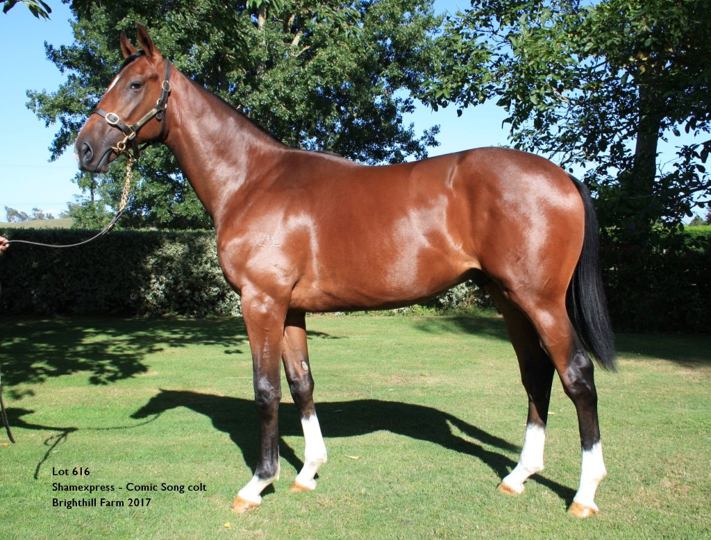 SHAMEXPRESS (NZ) (Bay 2009-Stud 2014). 3 wins-1 at 2-at 1000m, 1200m, A$1,150,475, VRC Newmarket H., Gr.1, Summer Heroes Raceday 2YO P., 2d VRC Sprint Classic, Gr.1, Lightning S., Gr.1, 3d VRC Coolmore Stud S., Gr.1, MRC HDF McNeil S., Gr.3, 4th ATC All Aged S., Gr.1, VRC Newmarket H., Gr.1. Out of a half-sister to SW OýReilly Rose. Related to SW Affinity (VATC Caulfield Cup, Gr.1). His oldest progeny are yearlings. 1st dam COMIC SONG, by Sadler's Wells. Unraced. Three-quarter-blood-sister to SPECIAL GALLERY. This is her eighth live foal. Her seventh foal is a 2YO. Her sixth foal is an unraced 3YO. Damof five foals to race, three winners- Comic Composer (g. by Stravinsky). 6 wins to 1550m, A$122,513, SAJC Adelaide Image Printing H., Boxing Day Races at Morphettville H., Geelong RC Betfair Winter Challenge H., 2d MVRC Webb Australia P. Global Fame (g. by Faltaat). 3 wins at 1400m, 1600m, HKJC Sandberg Gold Cup, Ho Sheung Heung Road H., ATV Classic Channel H. Gypsy Rock (f. by Stravinsky). Winner at 1400m, 3d BRC Livestock Transport P. Lethal Weapon (g. by Makfi). Placed in 2016, 2d Singapore TC Initiation P., 3d Singapore TC Hello Paris S. Eaglesham (g. by Eagle Mountain). Placed to 2016, 2d Singapore TC Class 5 H., 3d Singapore TC Class 5 H. 2nd dam LACANDONA, by Septieme Ciel. Unplaced. Half-sister to SMACKOVER CREEK, Lode, Salvora (dam of AUBE INDIENNE, MARE NOSTRUM, RAISONNABLE, SPECIAL GALLERY), Islands (dam of FIT TO LEAD), Nice Dancing (dam of MUSIDORA), Rolls (dam of FLYING SPUR). Dam of 12 named foals, 7 to race, 4 winners, inc:- Perigeo. Winner at 12¼f, 3d Haydock Threepwood S. 3rd dam GRAND LUXE, by Sir Ivor. 10 wins from 6f to 9f, Santa Anita La Merced S., L. Half-sister to L'ENJOLEUR, LA VOYAGEUSE, MEDAILLE D'OR, D'ACCORD, L'Extravagante. Dam of 16 foals, 10 to race, 7 winners, inc:- SMACKOVER CREEK(Mr. Prospector). 4 wins, Oaklawn Fifth Season S., L. Salvora. Winner at 2000m, Maisons-Laffitte Prix Bridaine. Dam of- AUBE INDIENNE(Bluebird). 5 wins from 1700m to 2000m, 434,000fr., US$466,073, Santa Anita Yellow Ribbon S., Gr.1, Las Palmas H., Gr.2. MARE NOSTRUM(Caerleon). 2 wins-1 at 2-at 1800m, Longchamp Prix Vanteaux, Gr.3, 2d Longchamp Prix Saint-Alary, Gr.1. Dam of- ERUPT(Dubawi). 5 wins at 2200m, 2400m to 2016, Woodbine Canadian International S., Gr.1, Longchamp Grand Prix de Paris, Gr.1. Spenderella. Winner at 1600m, Saint-Cloud Prix Pirette. Grandam of- I AM A STAR(I Am Invincible). 4 wins-2 at 2-to 1600m, A$636,450, to 2016-17, VRC Myer Classic, Gr.1, MRC Quezette S., Gr.3. Rolls. Unraced. Dam of- FLYING SPUR(Danehill). 6 wins-3 at 2-to 1600m, A$2,051,090, STC Golden Slipper S., Gr.1, Australian Guineas, Gr.1. Champion sire. Shoal Creek. 2 wins at 1200m, 1400m, 4th SAJC Hill Smith S., L. Dam of- ENCOSTA DE LAGO(Fairy King). 3 wins from 1200m to 1600m, A$469,850, VATC Vic Health Cup, Gr.1. Champion sire. |