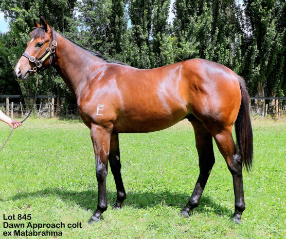 DAWN APPROACH (IRE) (Chestnut 2010-Stud Ire. 2014, Aust. 2014). Champion 2YO Colt in Europe in 2012. Champion 3YO Miler in Ireland in 2013. 8 wins-6 at 2-from 5f to 1m, The Two Thousand Guineas, Gr.1, Royal Ascot St James's Palace S., Gr.1, Newmarket Dewhurst S., Gr.1, Curragh National S., Gr.1, Royal Ascot Coventry S., Gr.2. Out of a half-sister to SP Galantas. His oldest Aust.-bred progeny are yearlings. 1st dam MATABRAHMA, by Darci Brahma. 8 wins from 1200m to 1650m, BRC Sirromet H., 2d BRC Skyracing.tv H., 3d Qld Tatt's RC Carlton Draught H. Half-sister to HEAT HAZE. This is her first foal. 2nd dam WESTERN FLAME, by Zafonic. Winner at 6f in GB. Dam of 5 foals, all raced, 4 winners, inc:- HEAT HAZE(Zabeel). 6 wins from 1800m to 2200m, Marton Cup, L, Hawkes Bay Thomson's Suits H., Quin Buildings H., Waikato RC Markwood Lodge H., Ashford Lodge H., 2d Waikato RC Norris Ward McKinnon H., Paslode H. Mr Ponzi. 4 wins from 1600m to 2400m, A$77,680, AJC Cartwright H., Convention Centre H., 2d ATC Jirsch Sutherland H., 3d ATC Kingsford H. Kaapafire. 2 wins at 1400m, 1600m, 2d ARC DA Peake P., QTC Lyndhurst Stud H. 3rd dam SAMYA'S FLAME, by Artaius. 2 wins at 9f, 1¼m in GB. Sister to FLAME OF TARA(dam of SALSABIL, MARJU, DANSE ROYALE, FLAME OF ATHENS, SONG OF TARA), half-sister to Welsh Love(dam of SECOND EMPIRE, BALESTRINI, AJHIBA, HEMINGWAY, IHTIRAM), Fruition(dam of NORTHERN SPUR, GREAT MARQUESS, KNELLER, OENOTHERA). Dam of 9 named foals, 8 to race, 4 winners, inc:- Raneen Alwatar. Winner at 1½m in GB. Dam of- Nishino Rufus(Symboli Kris S). Winner at 2, 3d Tokyo Sweetpea S., L. Wattrey. Raced once. Grandam of- Disappointing(Excellent Art). 6 wins-1 at 2-at 1000m, 1200m, to 2016, Milan Premio Deltra, Rome Premio Ravier, Premio St Paul House, 3d Rome Premio Carlo Chiesa, L. Captain Obvious(Choisir). Winner at 2, 2d Dundalk Star Appeal S., L, 4th Hollywood Park Real Quiet S., L, Santa Anita La Puente S., L. 4th dam WELSH FLAME, by Welsh Pageant. 4 wins at 1m, Newmarket Stanley House H., Doncaster Devonshire S. Half-sister to Sofala(dam of ELECTRIC SOCIETY, BOURBON BOY), Shine the Light (dam of TANWI), Brilleaux (dam of BOBZAO). Dam of 11 foals, 10 to race, 9 winners, inc:- FLAME OF TARA(Artaius). 8 wins-3 at 2-to 1½m, Curragh Pretty Polly S., Gr.2, Royal Ascot Coronation S., Gr.2, Curragh Athasi S., Gr.3. Dam of- SALSABIL(Sadler's Wells). 7 wins-2 at 2-from 1200m to 2400m, £744,267, Irish Derby, Gr.1, The One Thousand Guineas, Gr.1, The Oaks, Gr.1. MARJU(Last Tycoon). 3 wins-1 at 2-at 7f, 1m, £282,640, Royal Ascot St James's Palace S., Gr.1, Newmarket Craven S., Gr.3. Sire. Welsh Love(Ela-Mana-Mou). Winner, 2d Phoenix Park Diamond S., L. Dam of- SECOND EMPIRE(Fairy King). 4 wins-3 at 2-at 1600m, Longchamp Grand Criterium, Gr.1, Curragh Desmond S., Gr.3. Sire. |