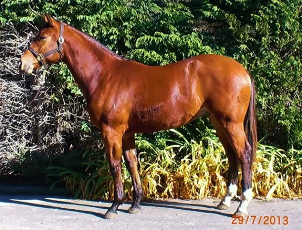 1st dam BOUNTY ROSE, by Centro. 4 wins at 1200m, CJC Fitzgerald Arms Tavern H., 2d CJC Racecourse Hotel Motor Lodge H., 3d CJC Christchurch Casino H., Win One Million Dollars on Cup Day H. This is her seventh foal. Dam of five foals to race, two winners, inc:- Blue Halo (g. by My Halo). 3 wins at 1200m. Bounty Blue (g. by Felix the Cat). Winner at 900m. Damaipuri (g. by My Halo). Placed to 2013, 2d Singapore TC Novice S., Ninetyfive Emperor H., 3d Singapore TC Initiation P. 2nd dam VIOLETS ARE TOO, by Danzatore. Winner at 1200m. Dam of 2 named foals, both winners- No Decision. Winner at 1350m. 3rd dam DELPHINIUMS BLUE, by Beaufort Sea. Winner at 2100m, 2d CJC Trial H., Martineau Brandy H. Half-sister to AFFINITY, Red Chase, Rose World (dam of O'REILLY ROSE). Dam of 5 foals, 3 to race, 2 winners, inc:- Nassifleur. Winner at 1600m. 4th dam GERANIUMS RED, by Brigadier Gerard. Unraced. Half-sister to Calf of Man. Dam of 9 foals, 8 to race, 6 winners, inc:- AFFINITY(Zamazaan). 5 wins from 1500m to 2500m, A$283,000, VATC Caulfield Cup, Gr.1, VRC Roman Leathergoods H., VATC Herald Cup, Normanby H., 2d SAJC Adelaide Cup, Gr.1, VATC Herbert Power H., Gr.2, TS Carlyon Cup, Gr.2, HR Way Welter H., Gippsland H. Red Chase(Zamazaan). 2 wins at 1900m, 2450m, VATC Neerim H., STC Waterfall H., 2d VATC So Called H., 3d South Australian Derby, Gr.1. Rose World. Unraced. Dam of- O'REILLY ROSE(O'Reilly). 9 wins-1 at 2-from 1100m to 2000m, NZ$292,175, Otago RC White Robe Lodge H., Gr.3, Dunedin Guineas, L, Southland Guineas, L, Matamata RC Stanley Group S., L, Otago RC Dunedin City Ford Trophy, CJC Oxford Consulting H., Speight's H., 2d WRC Trentham S., Gr.3, 3d ARC New Zealand S., Gr.1, Avondale Cup, Gr.2, CJC Canterbury Gold Cup, Gr.3-twice, 4th Waikato RC International S., Gr.1, Otaki Maori RC WFA S., Gr.1, Timaru Cup, L. Volkrose. Unplaced. Dam of- SHAMEXPRESS(O'Reilly). 3 wins-1 at 2-at 1000m, 1200m, A$780,475, to 2012-13, VRC Newmarket H., Gr.1, Summer Heroes Raceday 2YO P., MVRC Chandler Macleod Premium H., 2d MRC Schweppes H., 3d VRC Coolmore Stud S., Gr.1, MRC HDF McNeil S., Gr.3. Broken In |